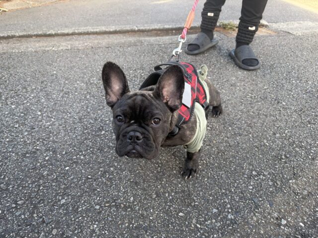 お散歩中にかわいいフレンチブルドッグに会いました。