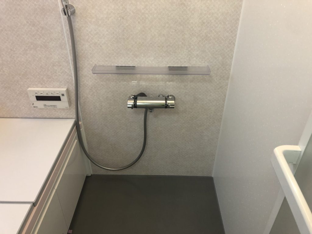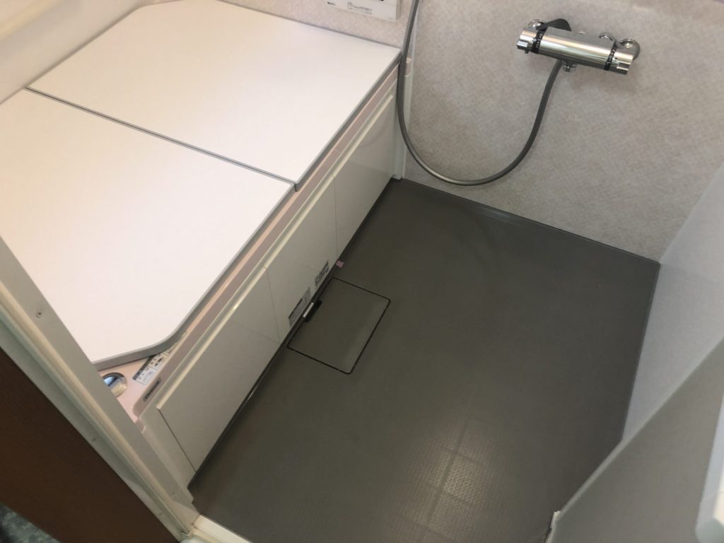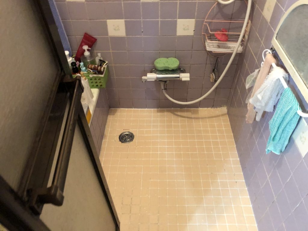 タイルで滑る浴室を安全で温かいシステムバスに変更しました。