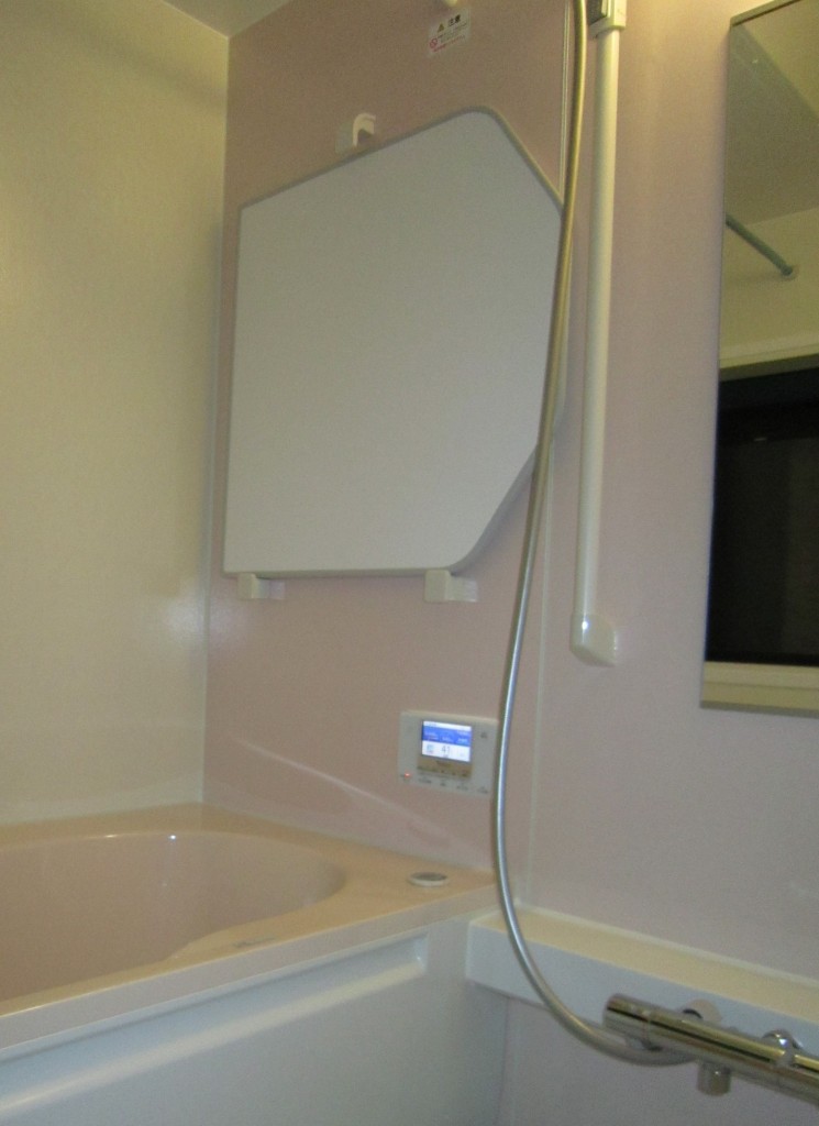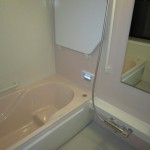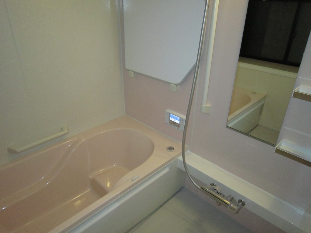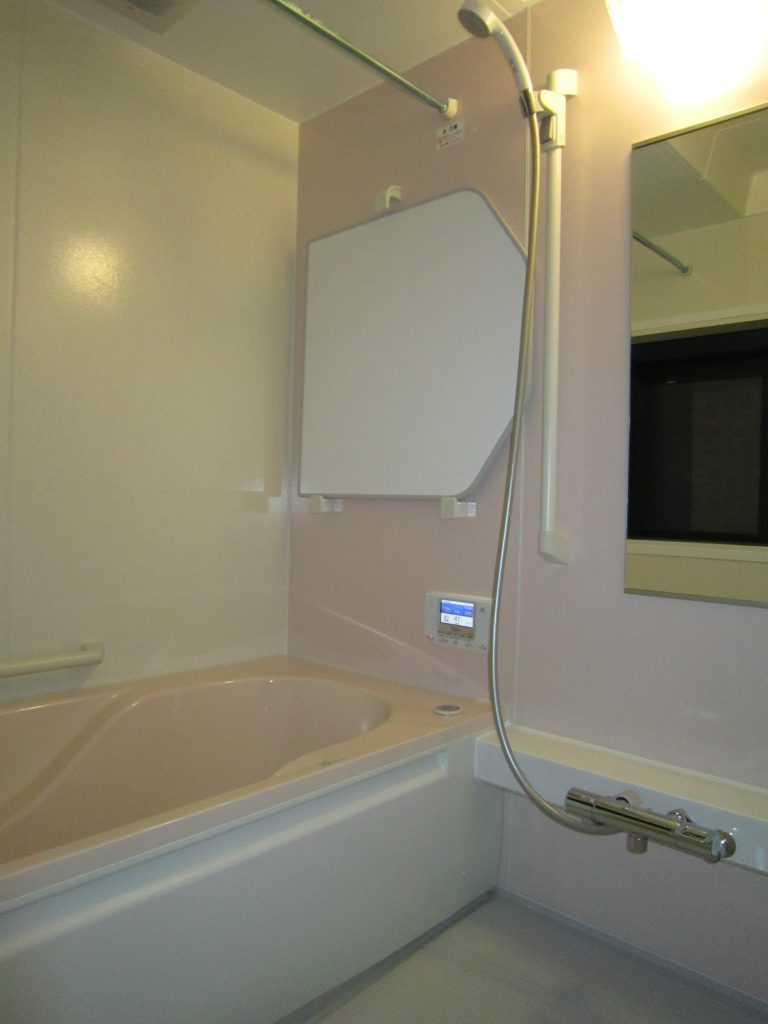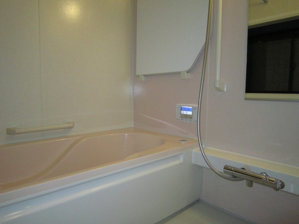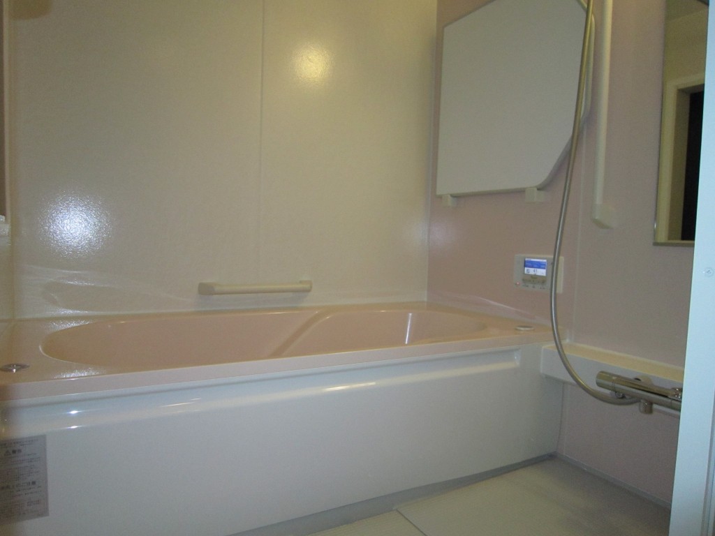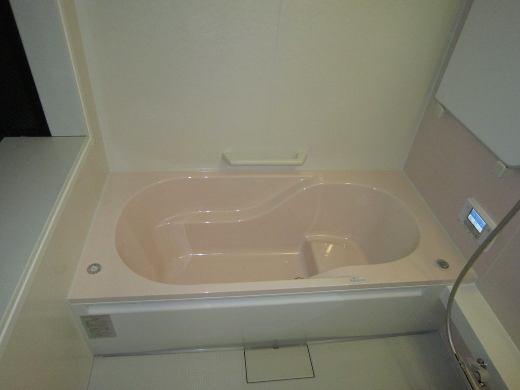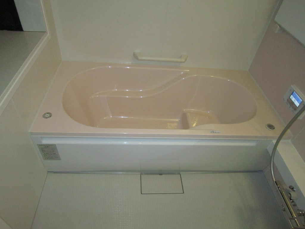 人気で優しい色の淡いピンクの浴槽を選ばれました。