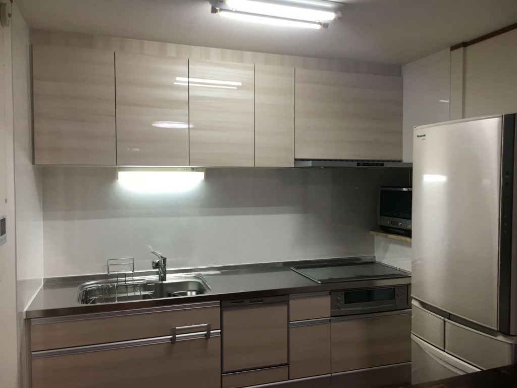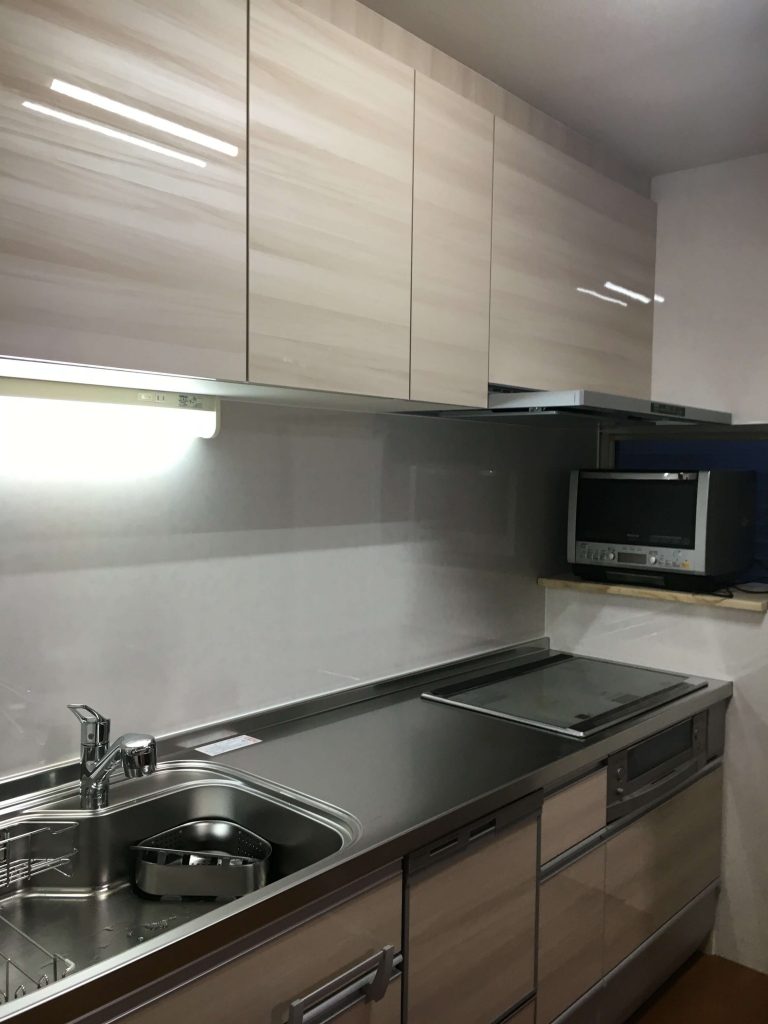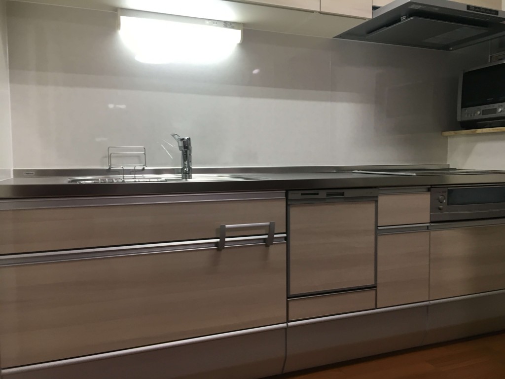 タイル張りのキッチン周りはキッチンパネルになりお掃除も楽になりますね。