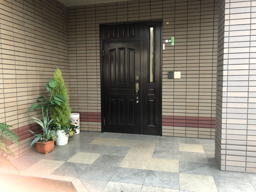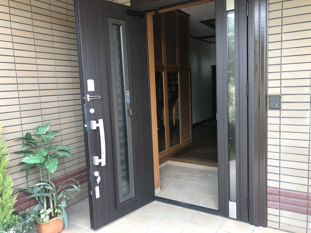 最近の大きく開く(親子ドア)で通気性の良いドア(採風ドア)にしたいという要望でした。床タイルも貼り替えをして一新しました。