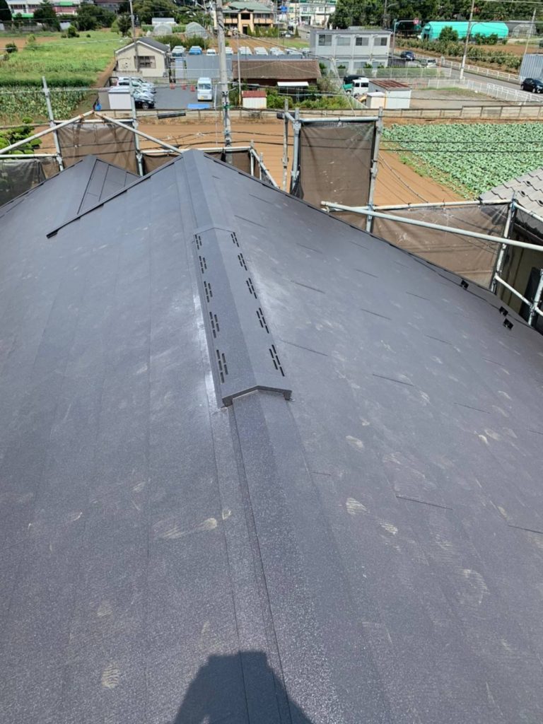 スレートの屋根の塗装ではなく、金属(ガルバリウム)の屋根にカバー工法。
