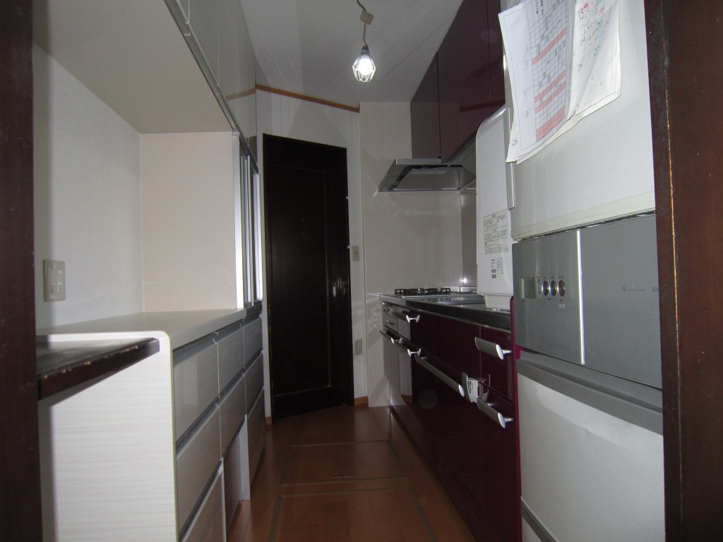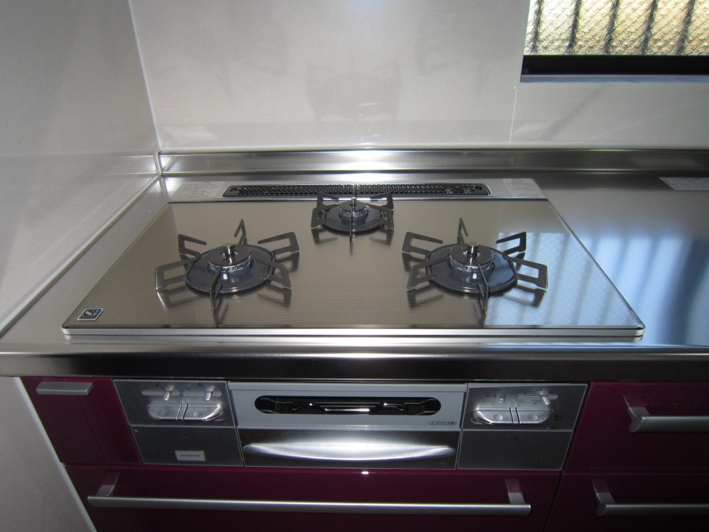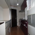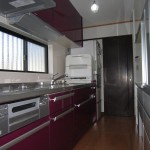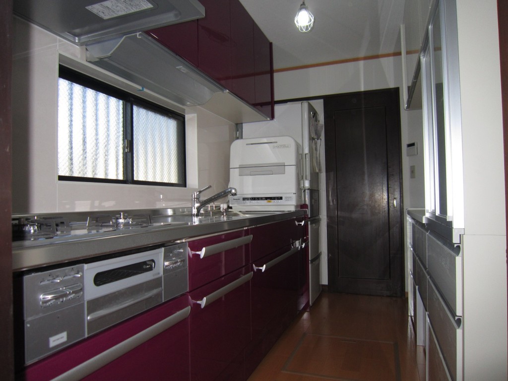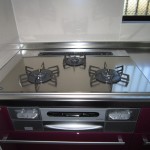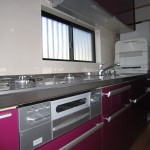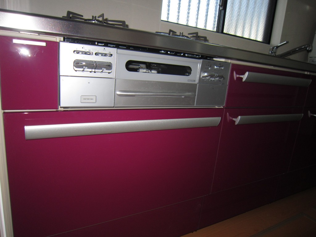 システムキッチンのお色はワインレッドで、設置してみるととても落ち着いたキッチンの雰囲気になりましたね。