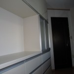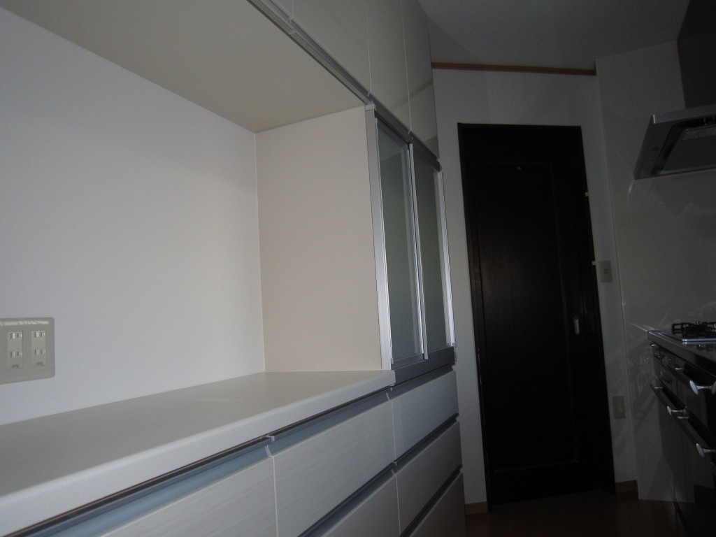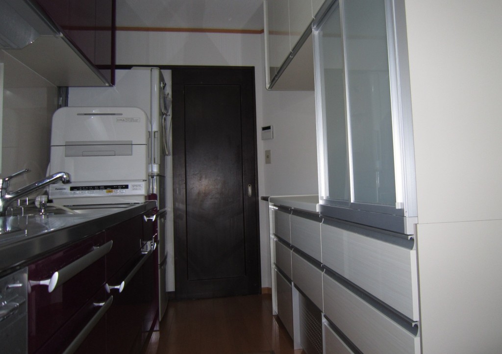 今までと同様の使用を配慮してキッチンの反対側は食器棚ではなく収納スペースも設置して使い勝手もアップしています。
