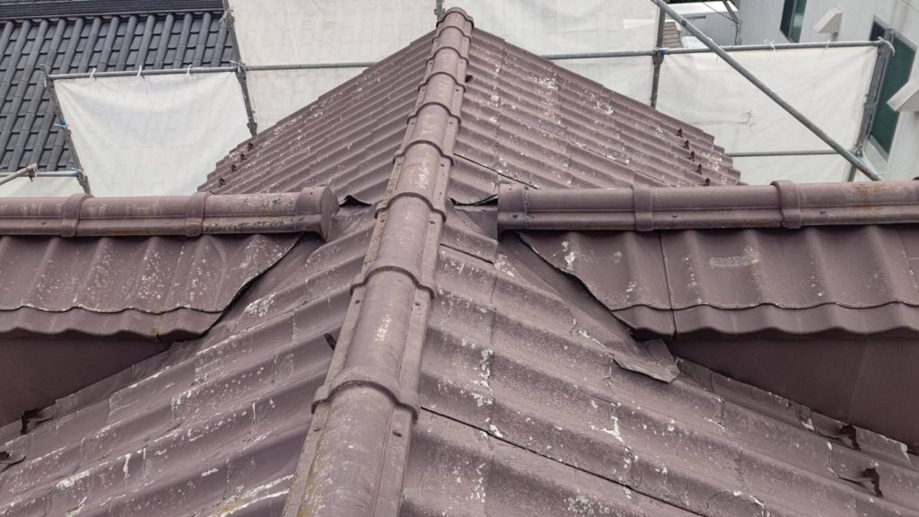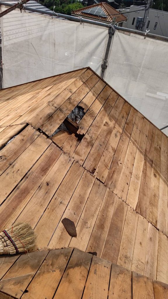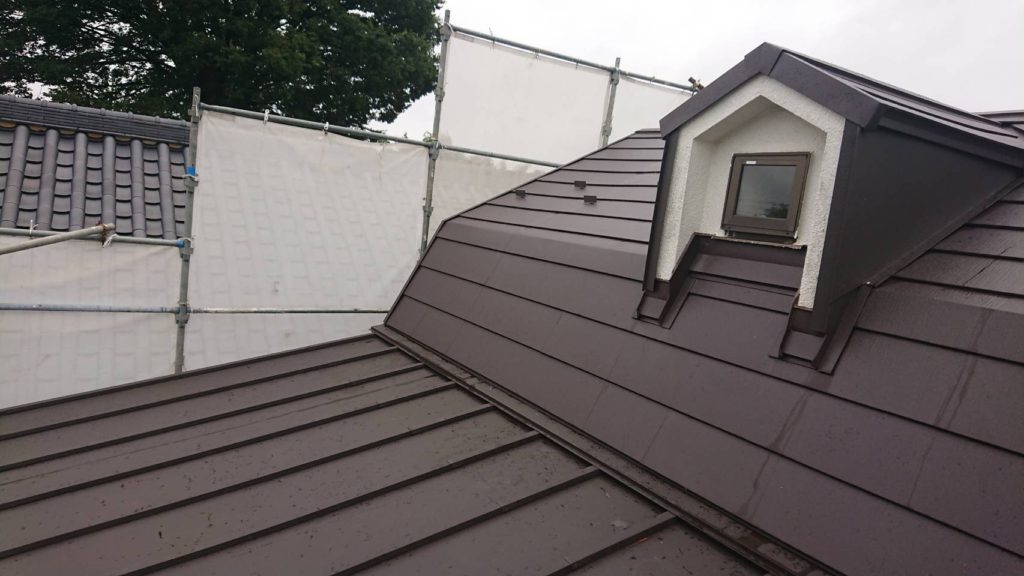 傷んだ古い屋根の代わりに新しい金属性の屋根に葺き替えました。