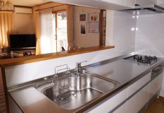 キッチンで料理をしていても子供の顔を見れたり、TVを見たりできるので、最近は人気のキッチンです。食事の準備、片付けがしやすい。